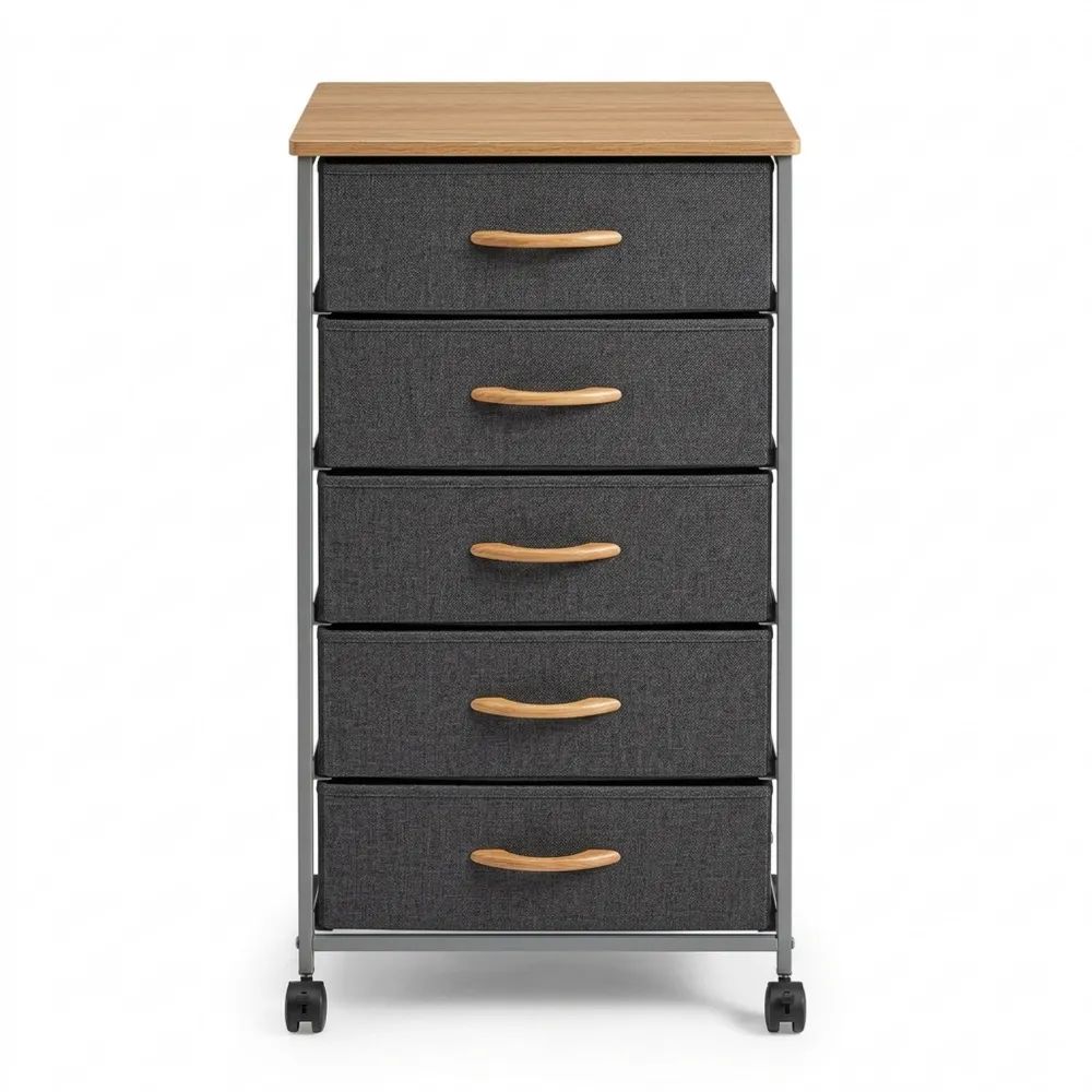 Rollbarer Schubladenschrank mit 5 Fächern in Holzoptik, Grau, 96,5 x 58 x 30 cm