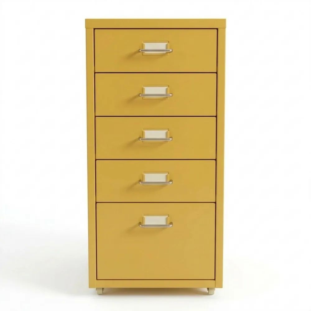 Metall Rollcontainer mit 5 Schubladen und Rollen, Gelb, 69 x 28 x 41 cm